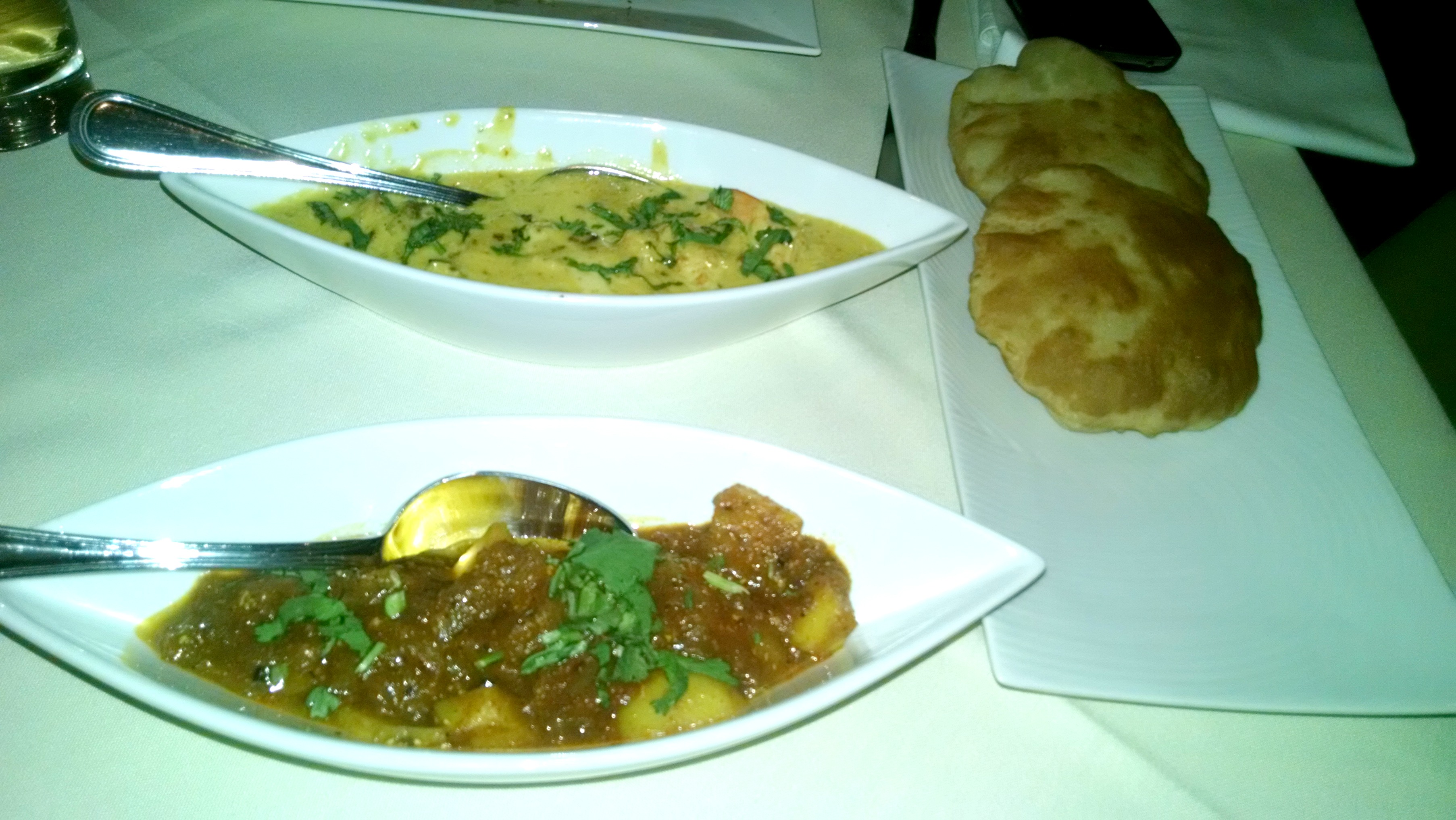 Chingri Malai and Spicy Potatoes