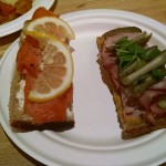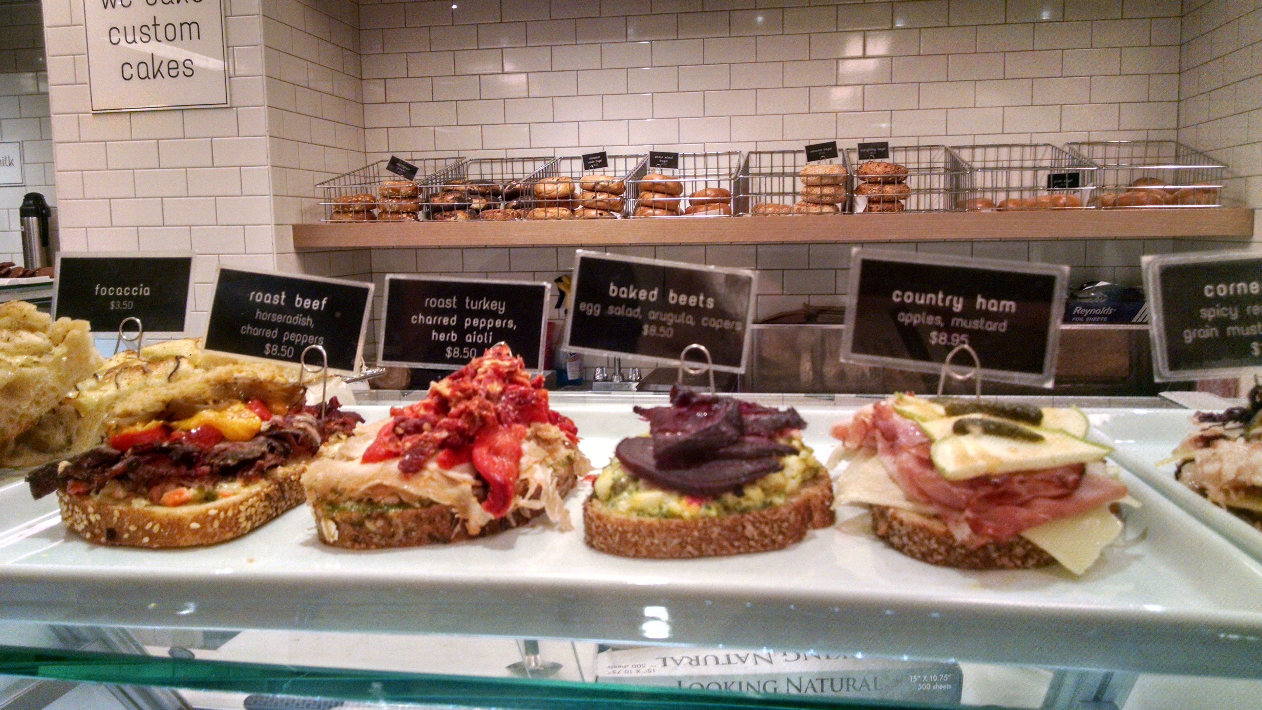 The first thing you notice when walking into the restaurant is how spacious it is, and not stuffy at all. The sitting area is intimate enough so that you can exchange pleasantries with your neighbor eating next to you, but far enough away so that you have your space. Framing the window near the cashier are some of the handmade breads. Near the back is where you have the kitchen, where you can order your different smorrebrods (Nordic open-faced sandwiches), soups, and deserts. You then have your salad and veggie section where every salad is made daily. Everything is fresh and locally sourced. The prices are extraordinary for the quality of food offered.
