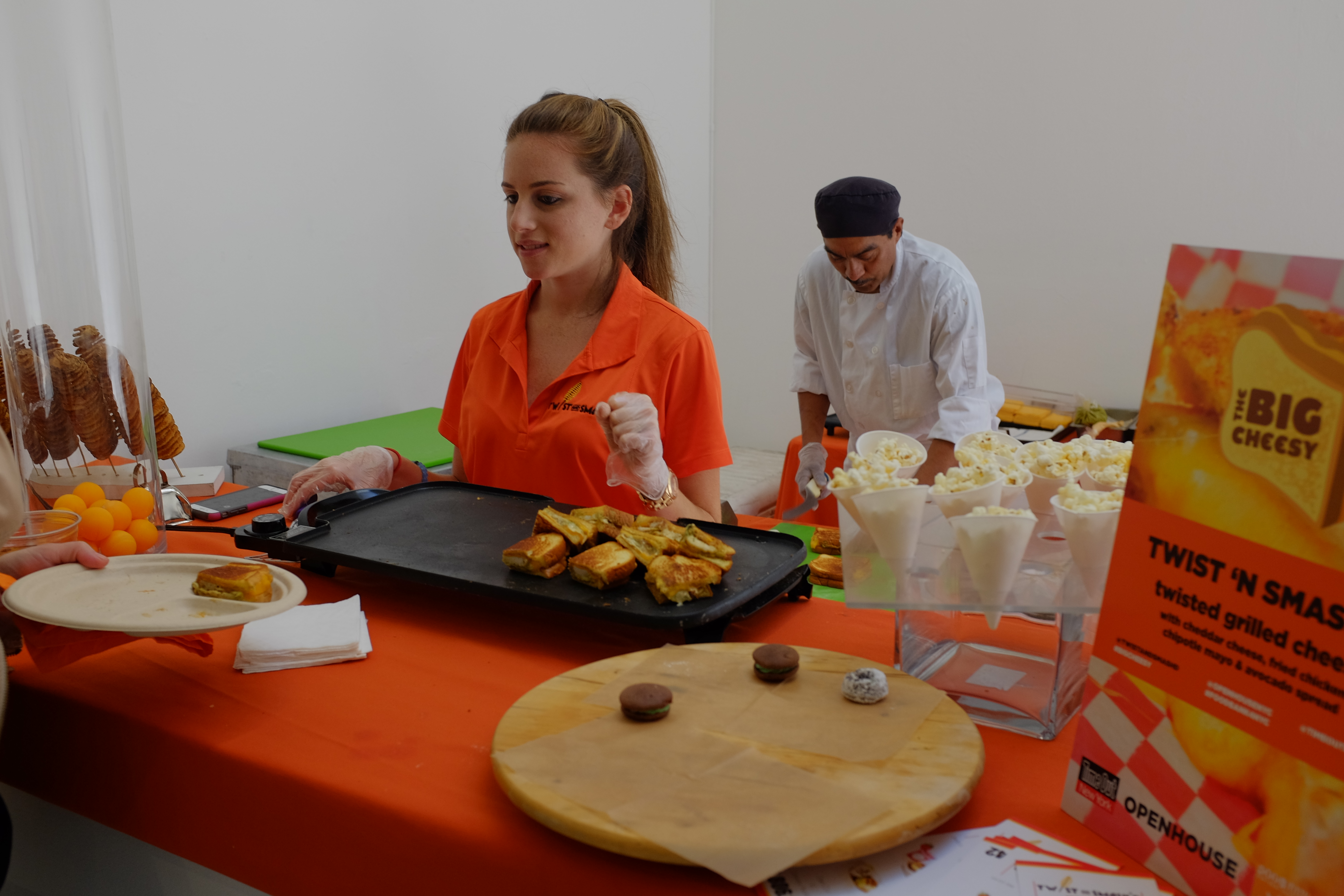 Twist ’n Smash’d, a burger restaurant known for its twisted potato fries with two locations in Queens, served up a Twisted Grilled Cheese with cheddar, fried chicken, chipotle mayo and avocado spread. Lightly spiced popcorn, a mini minty moon pie and strawberry lemonade served as accompaniments.