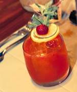 In a cocktail shaker, muddle fruit and herbs. Add remaining ingredients. Shake and strain over fresh ice. Garnish with rosemary sprig and lemon wheel.
