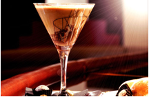 Shake all ingredients with ice and strain into a martini glass, garnish with chocolate sauce and cinnamon.