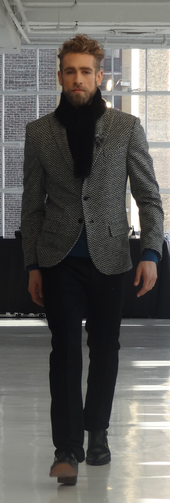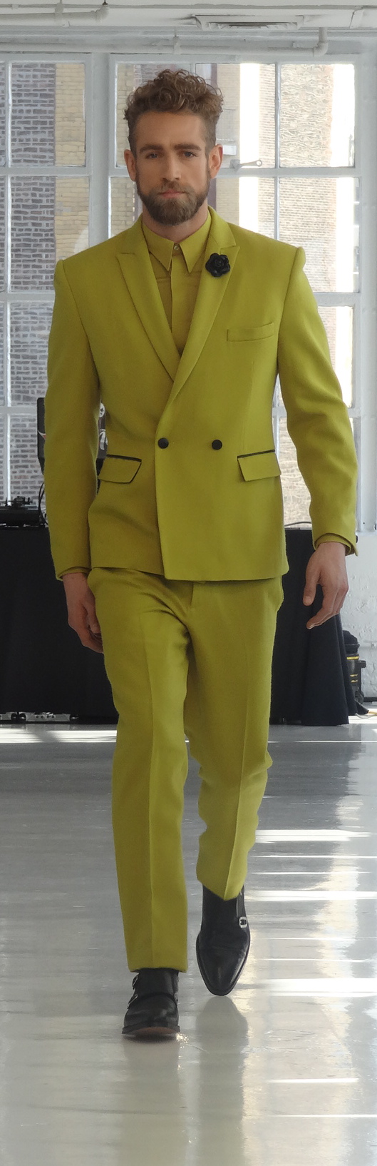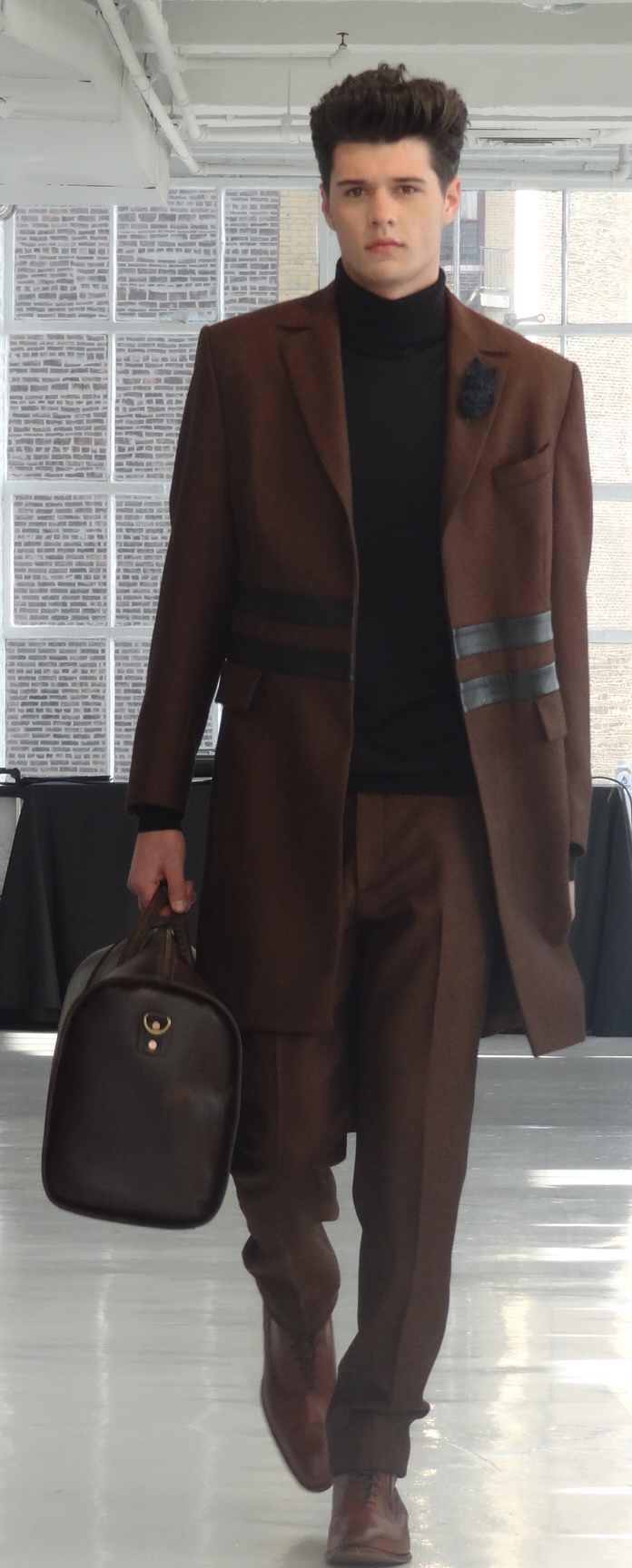The collection featured outstanding craftsmanship and playful, yet fashionable designs. Remarkably, the bespoke quality suits retail for affordable prices from $665 to $995. The line featured a range of materials, from tweed and wool to linen and leather. Some of the suits were more tame and could be seen on any young, fashionable man, while others were for the more daring of males. Colors ranged from neutrals to bright greens, burnt oranges and teal. Check out some of our favorites!