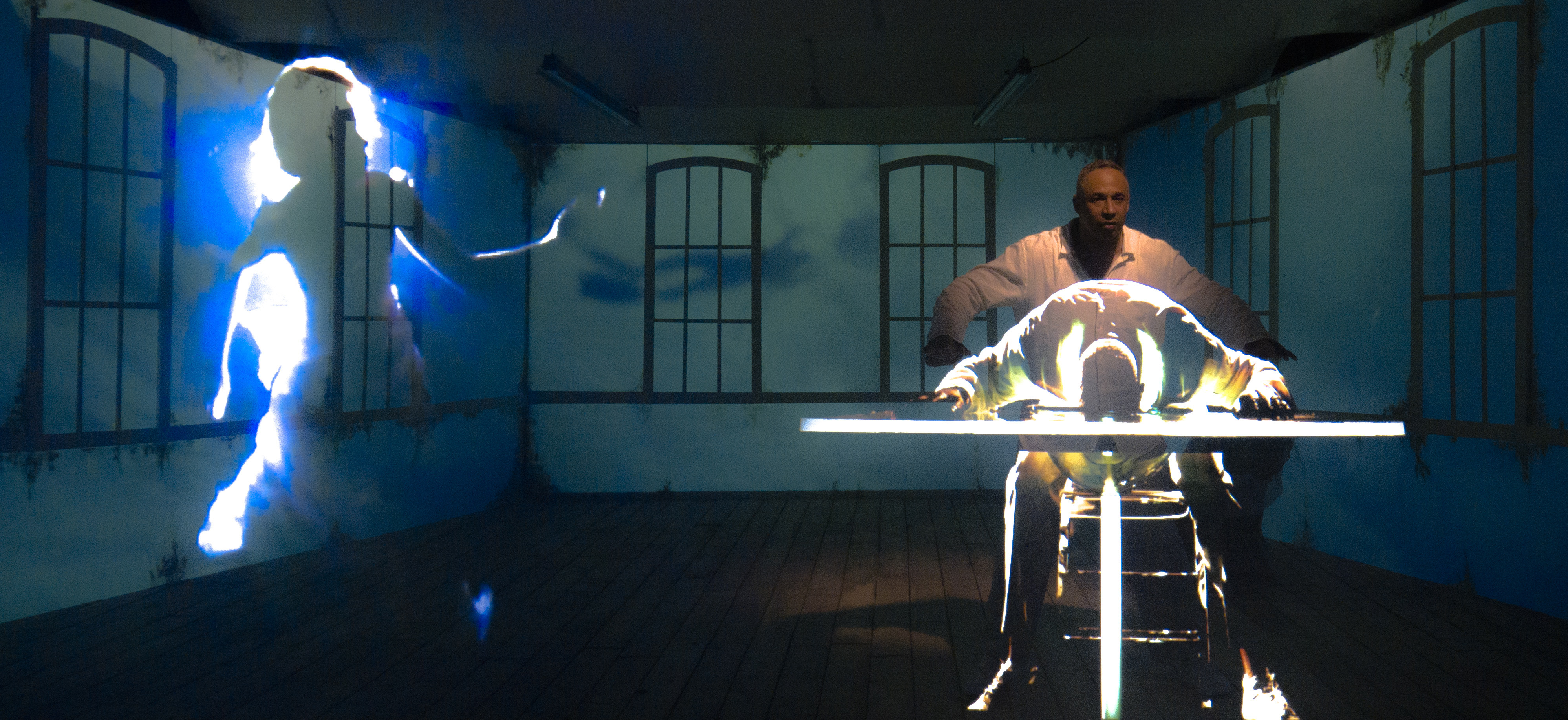 Deepest Man, a multimedia theatrical production, premiered last week at 3-Legged Dog Productions to great reviews. The show, written by James Scruggs and directed by Mark Rayment, utilizes remarkable technology called Musion Eyeliner, which creates live 3D holographic images on stage. Deepest Man tells the tale of a grieving Dr. Hazzardville Sommers, who recently lost his wife to a drowning accident. The doctor, now finding himself in role reversal, is now a patient in a mental institution, where he experiments with freediving, an extreme sport in which divers hold their breath instead of using scuba equipment.