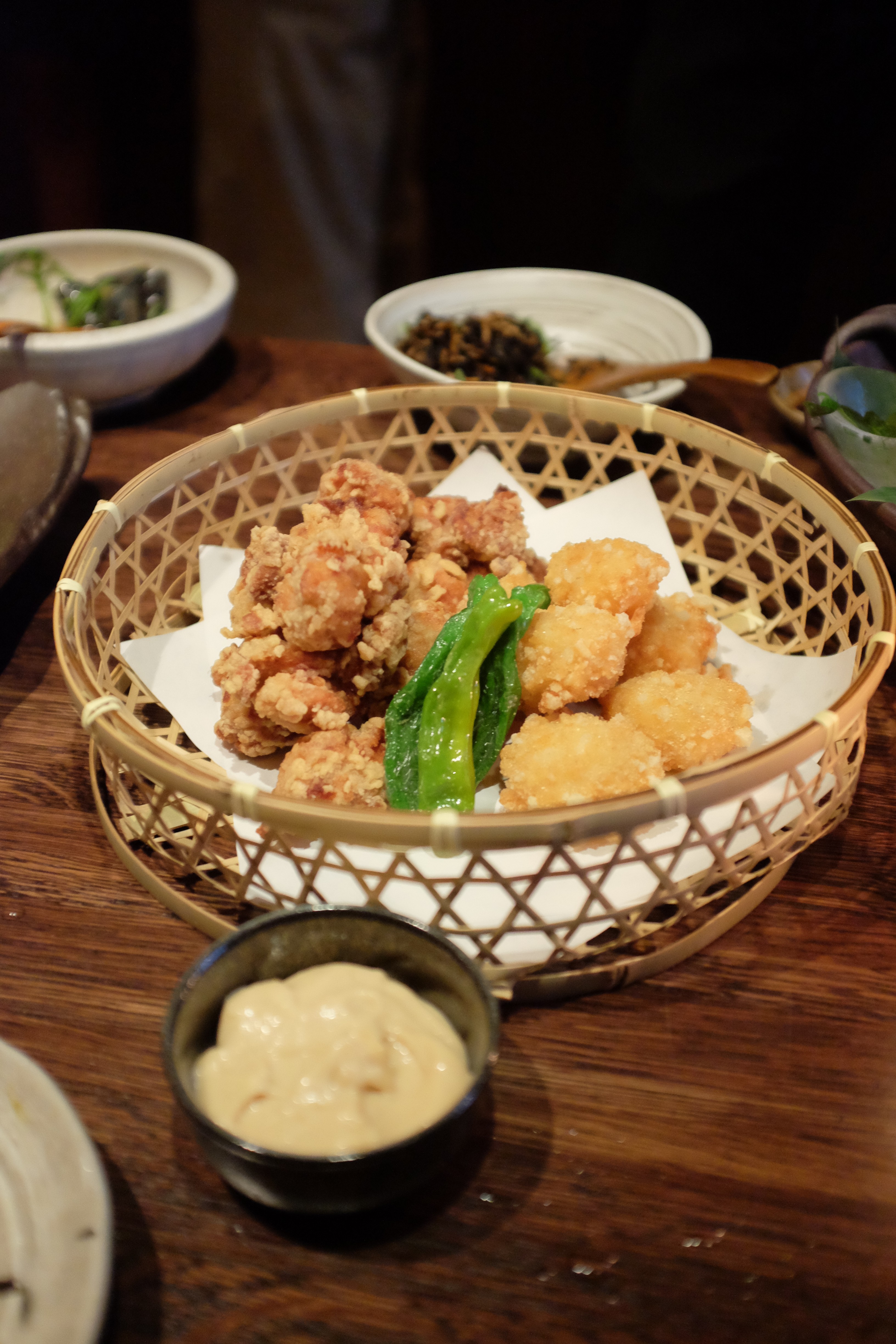 Next, we tried our personal favorites of the whole evening: fried scallop with rice cracker and sweet corn tempura served with salty, spicy ichimi pepper. The corn tempura is something that will put Daruma-Ya on the map and it’s well worth stopping by for a cocktail or two for the excuse to chow down on it again.
