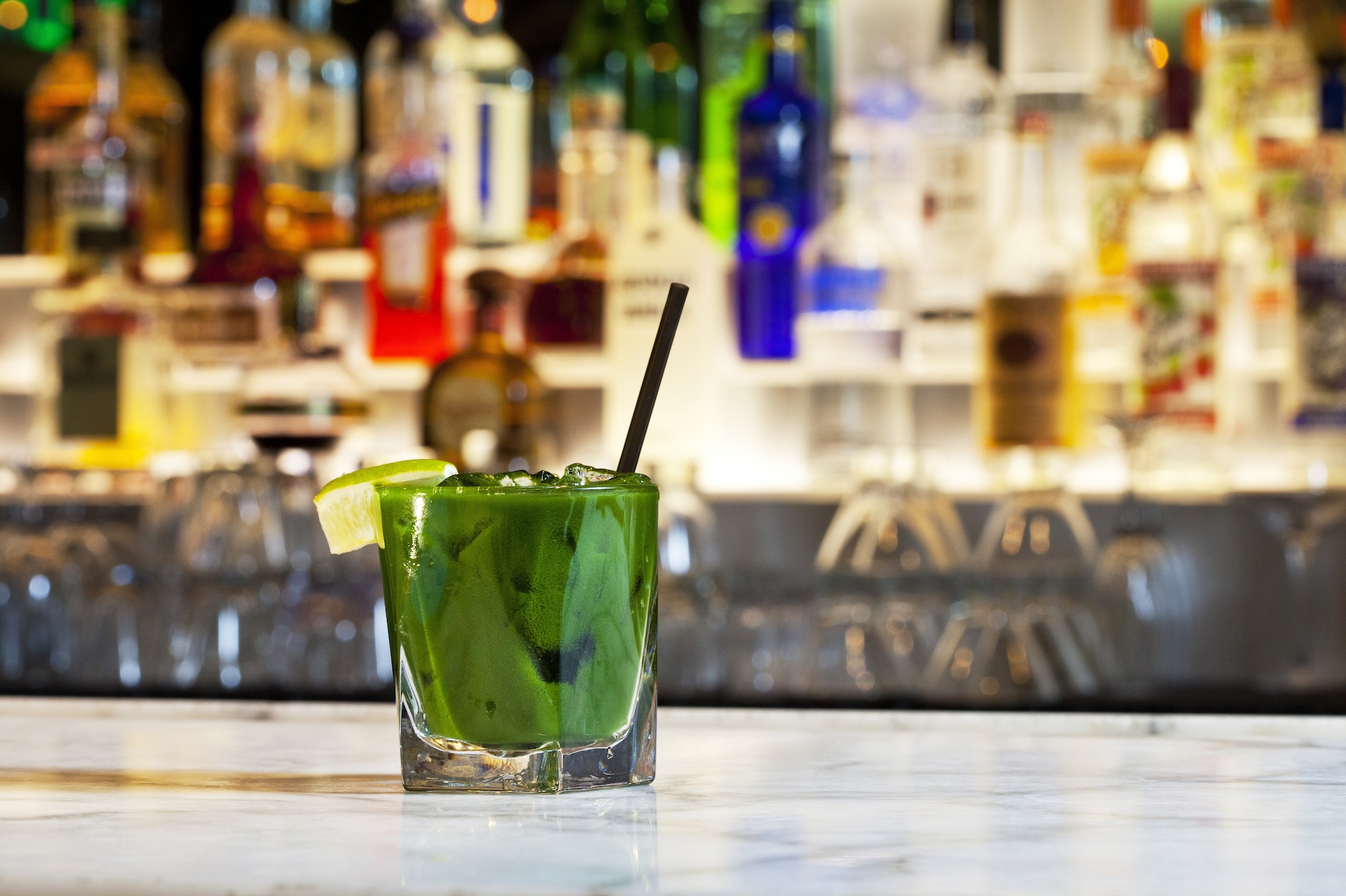 Combine ingredients and blend with one cup of ice. Pour into a rocks glass. Garnish with a lime wheel.