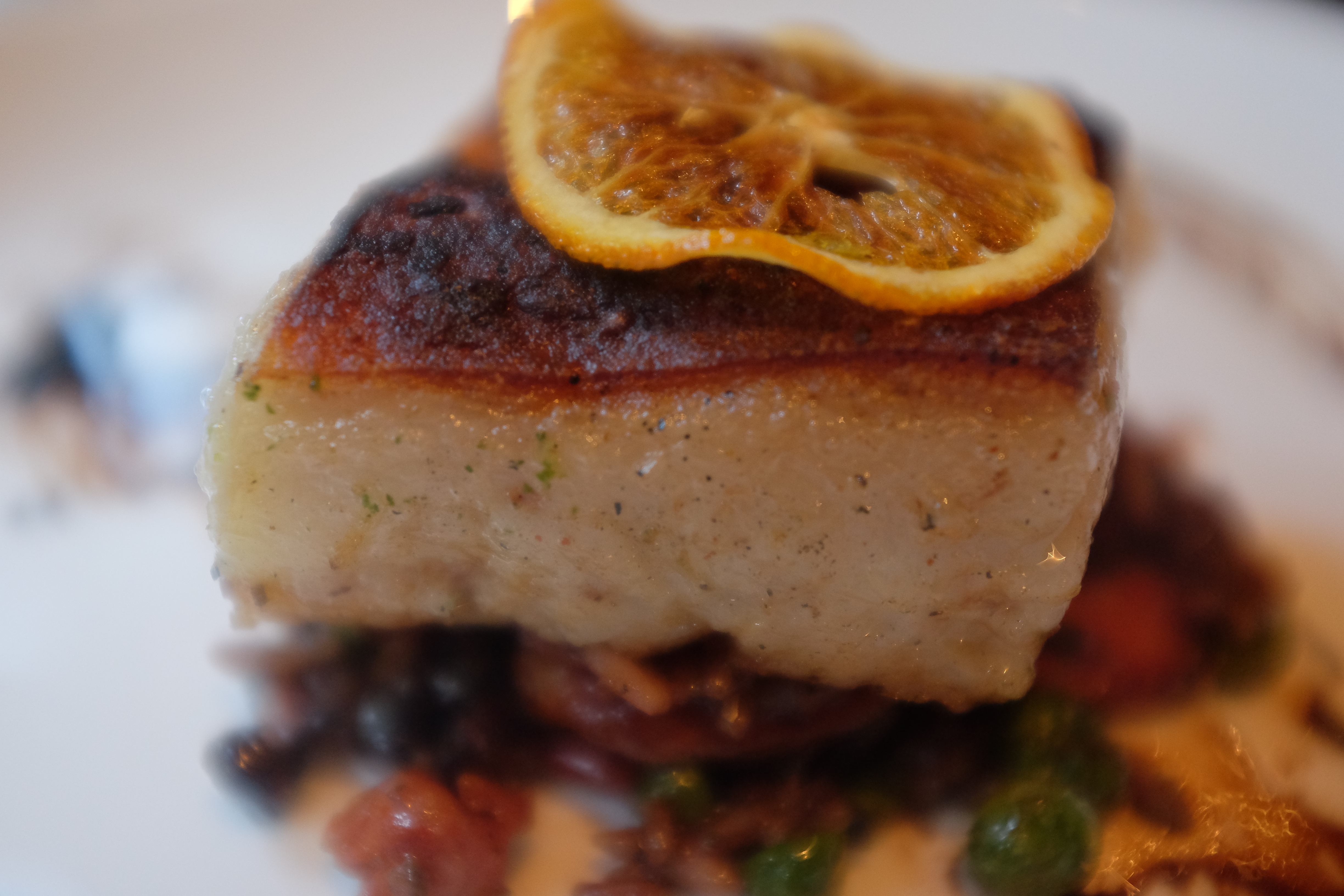 I started my meal with a classic Mojito (Cuba also makes a delicious virgin one if you’re not drinking). This was the perfect accompaniment to the Salmon Tartar, which is served with a layer of guacamole, and the spinach/manchego empanadas. But when you’re eating Cuban food, it’s not a day to be a vegetarian, and, as such, the superstar app was the Chicharron Prensado, a braised pork belly with a balsamic glaze on a bed of congri – a combination of rice and beans with chorizo and green peas.