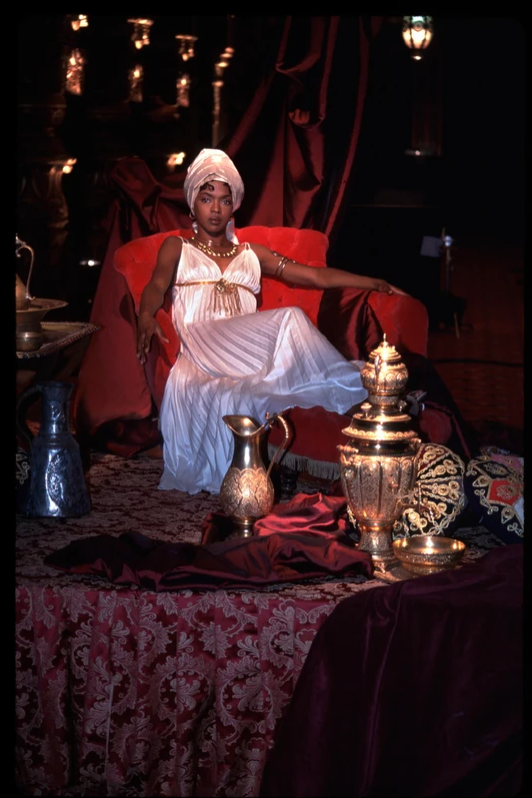 The exhibit featured gripping photographs of the late rapper DMX and songstress, Amy Winehouse, along with breathtaking images of rock icons like David Bowie and Mick Jagger. There are shots of hip hop legends like Lauryn Hill, Busta Rhymes, and RZA. It also included beautiful images of R&B favorites like Rihanna and Aaliyah. But my favorite image was of Lil’ Kim, shot by Derrick Santini. The photoshoot was shortly after her trial in 2005. Santini said, “I sold them this idea of Lil’ Kim as Joan of Arc. So we did this medieval story, and this was her burning at the stake.” The result is incredible! I’ve never seen Lil’ Kim so vulnerable, yet so powerful.