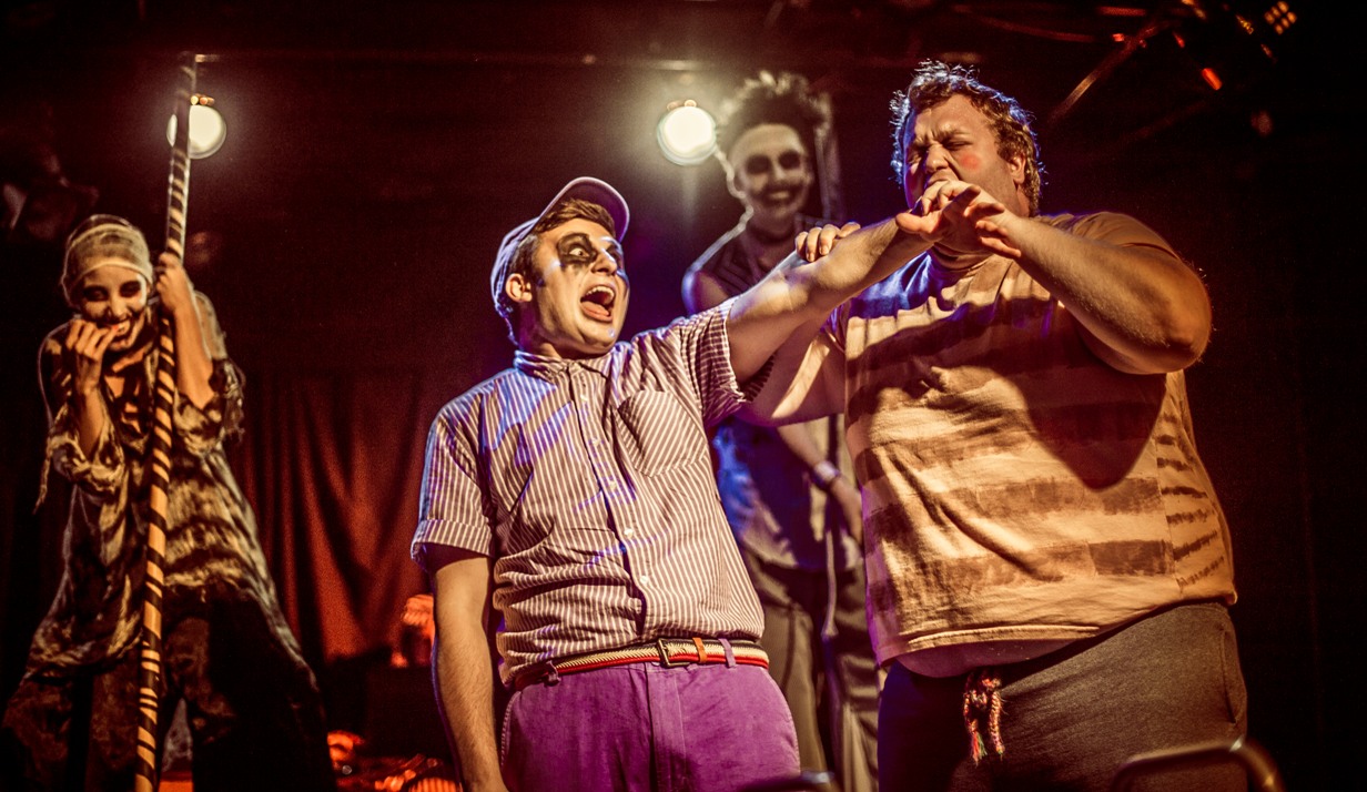 “Fatty Fatty No Friends” is a dark operetta that explores the effects of bullying, classism, and the fragile mental state of human beings through the eyes of an overweight child living in a gothic version of our reality. Haunted by his own self, the story follows Tommy through a day in his life as the “fatty” from the title. The usual cliches of such stories are used and then reinvented. There are undertones of something sinister guiding our hand through the cheerful music that accompanies it. The amazing voices telling us the beats of the story as they happen and we follow each one with ghoulish delight. This is a children’s show aimed at adults, (or an adult show made for kids) that takes great pleasure of welcoming us into the web of adult themes that are mixed with the simple narrative. This creates an elaborate message at the end, one that is poignant, and it does it without hitting you over the head with it. Most children’s show wear their message on their sleeve, this one might be obvious, but the way it’s told makes it unique and exciting. And children should be able to see it, besides the gory and twisted ending, this is perfect for them. After all, fairy tales used to be like this, to scare children and amuse them at the same time and in the process, teach them.