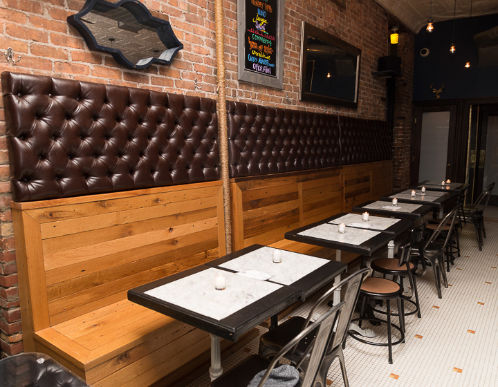 Their libations range from gin and vodka to whiskey and rum, all of which are perfect for a night out. We particularly enjoyed the Bourbon Street Bon Bon, made with bourbon, molasses, and fresh lemon. The food served at Henri is perfect for sharing with friends and is just the kind of stuff you’d want to nosh on pre, post or during a night of drinking. Inspired by the seasons, the menu will continually change throughout the year. Currently, they have deliciously warming soups (all served in steins, with toast), like Butternut Squash, Tomato Bisque and Split Pea, as well as a selection of salads. Their mini sandwiches are definitely worth getting your hands on — from the Die Klassische, made with munster cheese, sauerkraut, bratwurst served on pretzel bread with beer mustard dip, to Le Classique, made with gruyere, caramelized shallots, garlic toast and sherry thyme au jus, you’re mouth will be watering for more.