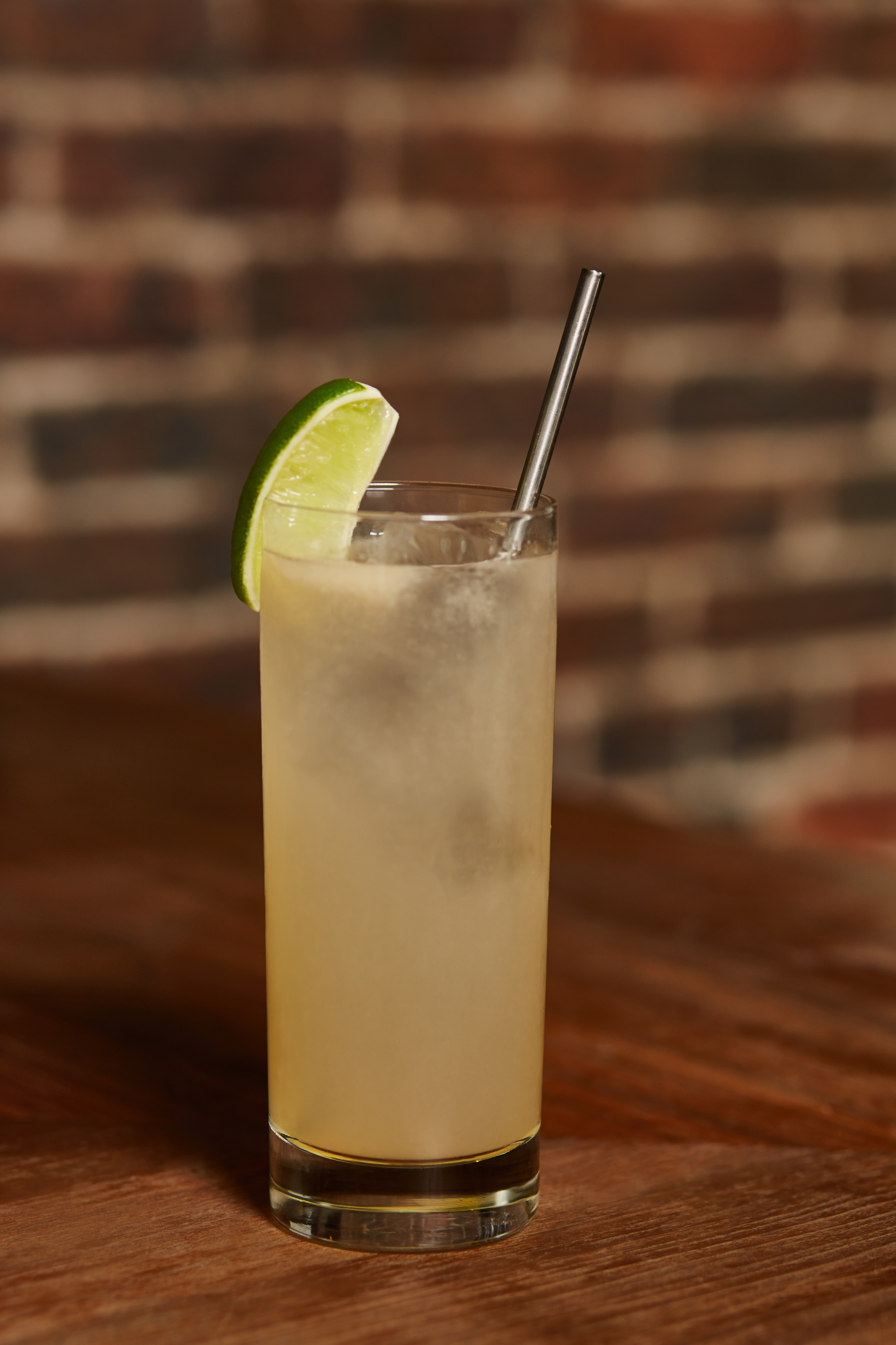 Combine ingredients in a glass and serve. Garnish with a lime slice.