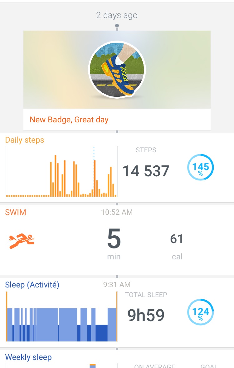 So what exactly does this watch do besides tell the time? A whole lot! The adorable watch (which you will definitely get compliments on) tracks your every day movement, from how many steps you take, how many calories you burn, the distance you go, how much you swim, and it even tracks your sleep. All you need to do is download the free Health Mate app on your smartphone and the watch automatically syncs up with it once it’s opened. Here, you are able to set daily goals (ex. 10,000 steps daily) and track your progress.