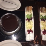 The meat course comes next, which allows you a choice of filet mignon, hanger steak, pork tenderloin or chicken breast, along with oil and broths such as canola, olive, vegetable or red wine. House-made dipping sauce also accompany the course, which only enhance the flavors of the meat, which cooks in seconds. Of course you must save room for the dessert course because you won’t be able to say no to chocolate fondue. Both dark and milk chocolate fondues are available, which come with a seasonal fruit tray, marshmallows, banana cake and white chocolate cake for dipping.