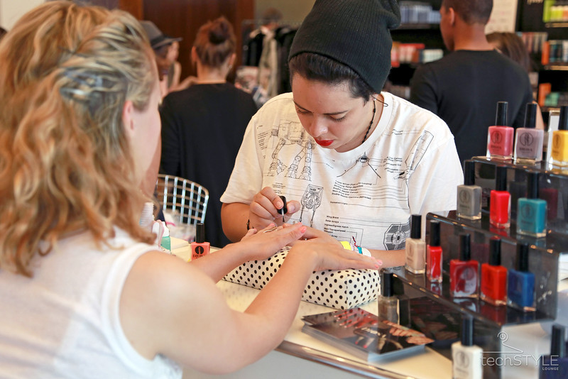During the chaos that is New York Fashion Week, it is only fair that between all the shows and parties we are running to and from, we get just a little bit pampered. Luckily, we got more than we even bargained for at the techSTYLE Lounge, hosted by the House of Bumble. There was a whole slew of things to experience at the lounge, from makeup touch-ups provided by Chrislie Formulations and manicures by Diosa Nails to comforting massages by Oasis Day Spa.