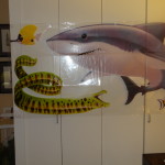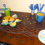 Attack the decor! No fete is complete without special decorations and styling. Keep it under the sea, with shark and underwater creature decals, fishing net, anchors, lifesavers, boats and anything nautical you can get your hands on. Don’t have a lot of space? No problem! We managed in a tiny NYC apartment.