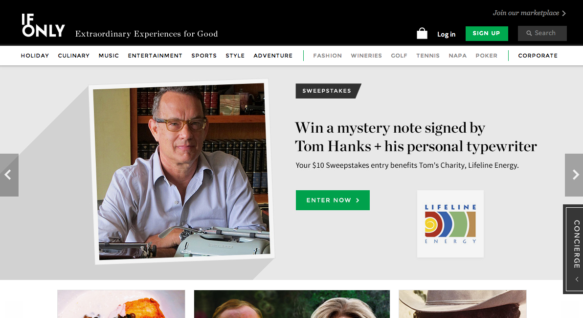IfOnly was founded two years ago by Trevor Traina and has been growing and expanding ever since. The statement on which the idea was founded is that true luxury isn’t measured by what we own or our possessions, but rather the experiences we have had and the memories that accompany them. Ifonly aims to give people the experiences they have always dreamt of, while simultaneously contributing to and helping as many charities as possible. The experiences offered include all interests and price ranges imaginable. Members of the site can pick from several categories, including holiday, culinary, music, entertainment, sports, style, and adventure. In each category there are certain luminaries who help make each experience happen and who also play a role in which charity gets a portion of that particular purchase. For example, Lady Gaga is a luminary in the music category- people are given the chance to meet her and in return, the Born This Way Foundation will benefit from that.