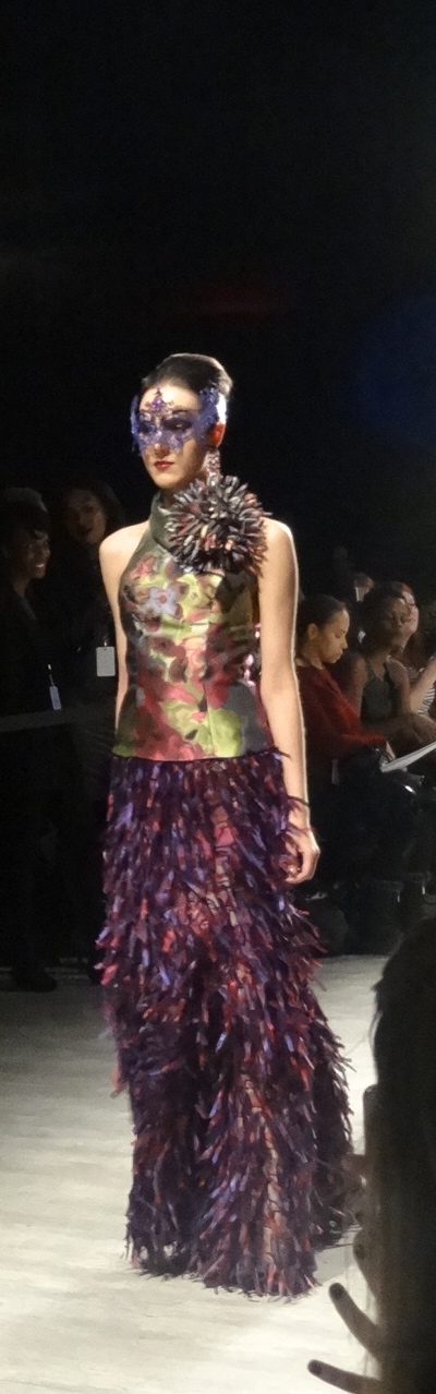 The large collection featured a range of prints, colors and textures, that somehow all seemed to form into a cohesive collection. The designer drew inspiration from the ‘quintessential American,’ using clean lines, architectural details and timeless glamor. Keeping the modern American man and woman in mind, B Michael developed a luxurious collection that transformed from daywear to cocktail wear, all the way to festive evening-wear as the show progressed. The excitement of the crowd was palpable once the evening-wear made an appearance, made only more glamorous by the models donning masks, because let’s face it, everyone loves a masquerade. Check out some of our favorite looks from the night below.