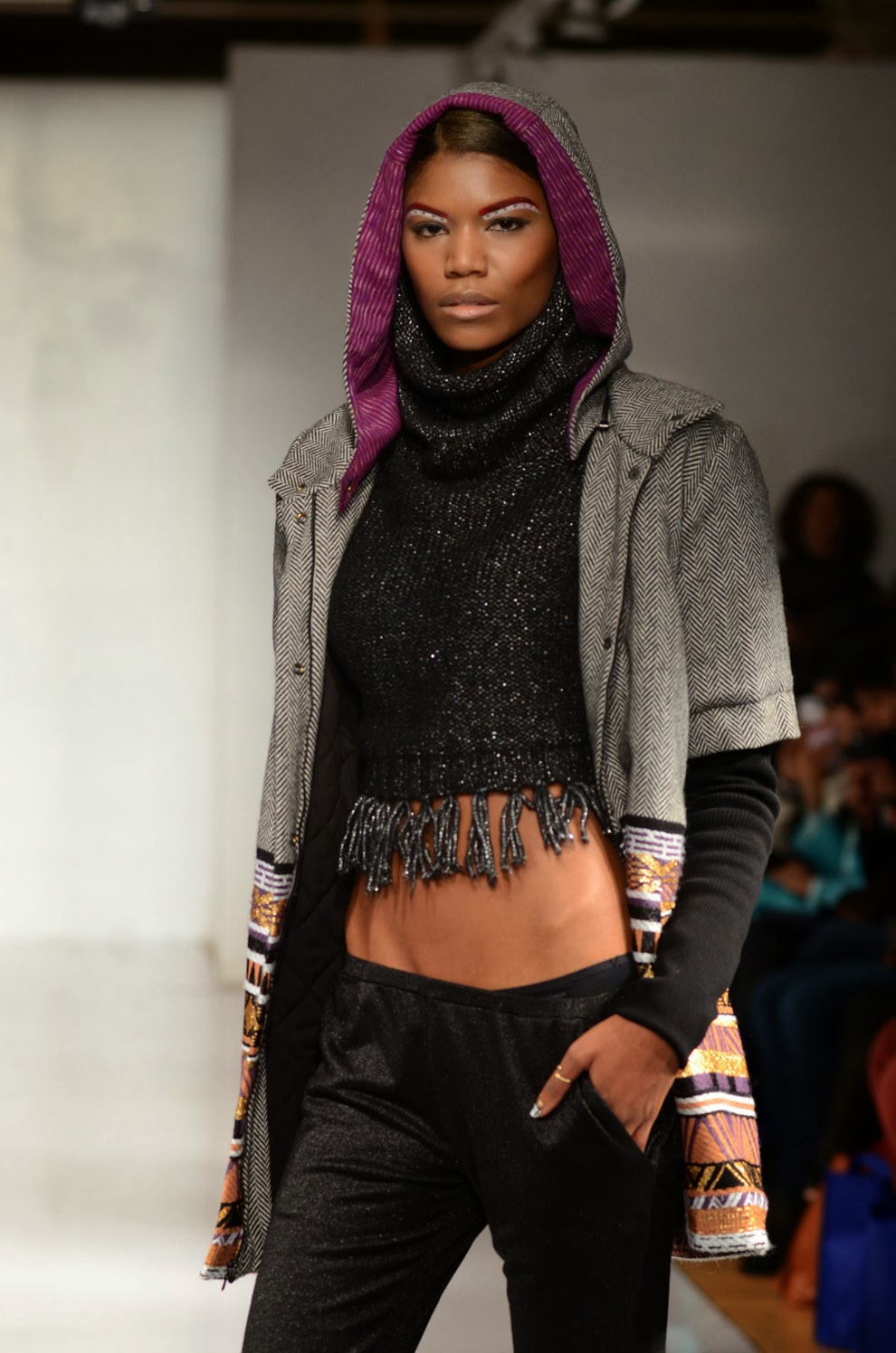 Manhattan with a Twist attended the first day of shows, which was split into two collectives, showcasing Ready to Wear and Demi-Couture collections. The ready to wear collective featured Abacaxi, Vaunt & Sol and Heart & Noble. Abacaxi is a womenswear collection created by designer Sheena Sood. All of their fabrics are ethically sourced directly from artisan non-profits. We really enjoyed this collection as it came down the runway. The bold, pink eyebrows on the models made us fall in love, along with the rest of the styling. Some of the fabrics had tribal inspiration, but they were incorporated into looks that were more urban, making beautiful pieces.