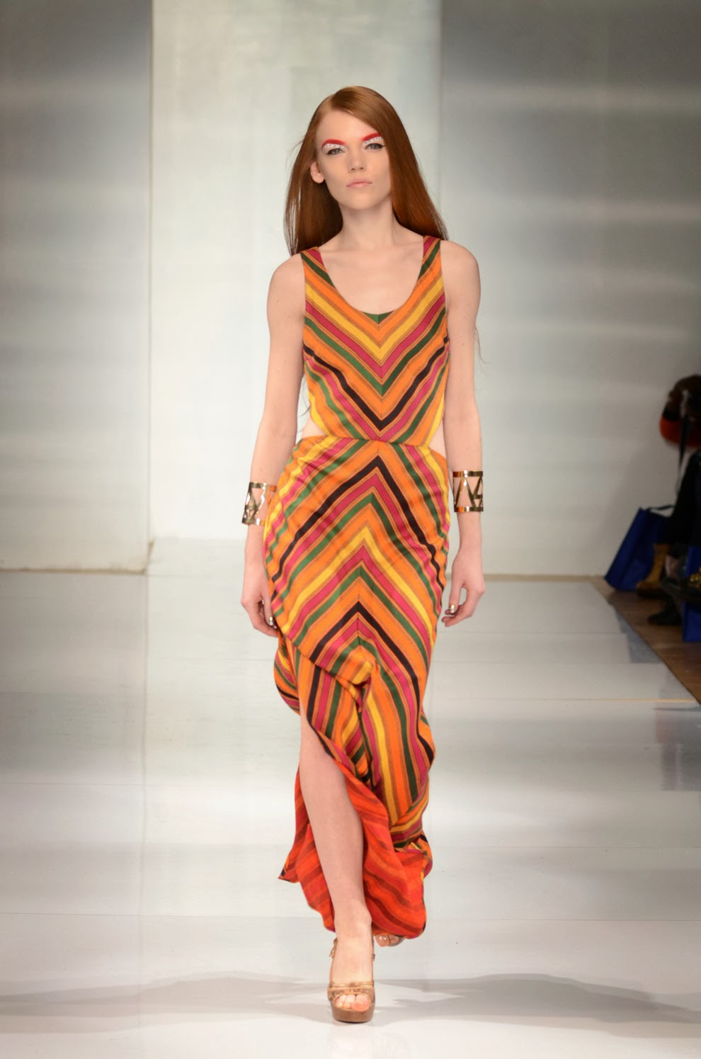 Vaunt & Sol is a luxury brand dedicated to functional beauty and wearable art, which was made very clear as the first model walked down the runway literally wearing a painting as a top. The brand was started by Nicole Vaunt and Najva Sol. Vaunt & Sol’s designs aren’t for everyone, but do incorporate beautiful prints and bright colors. The collection definitely stands out and showcases the art that they desire to incorporate into fashion.