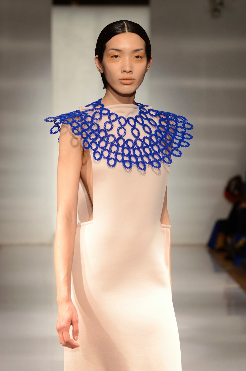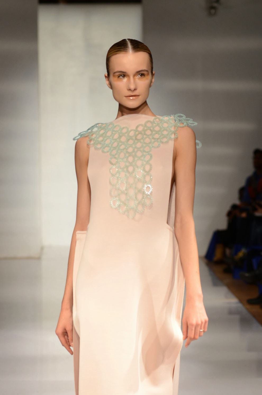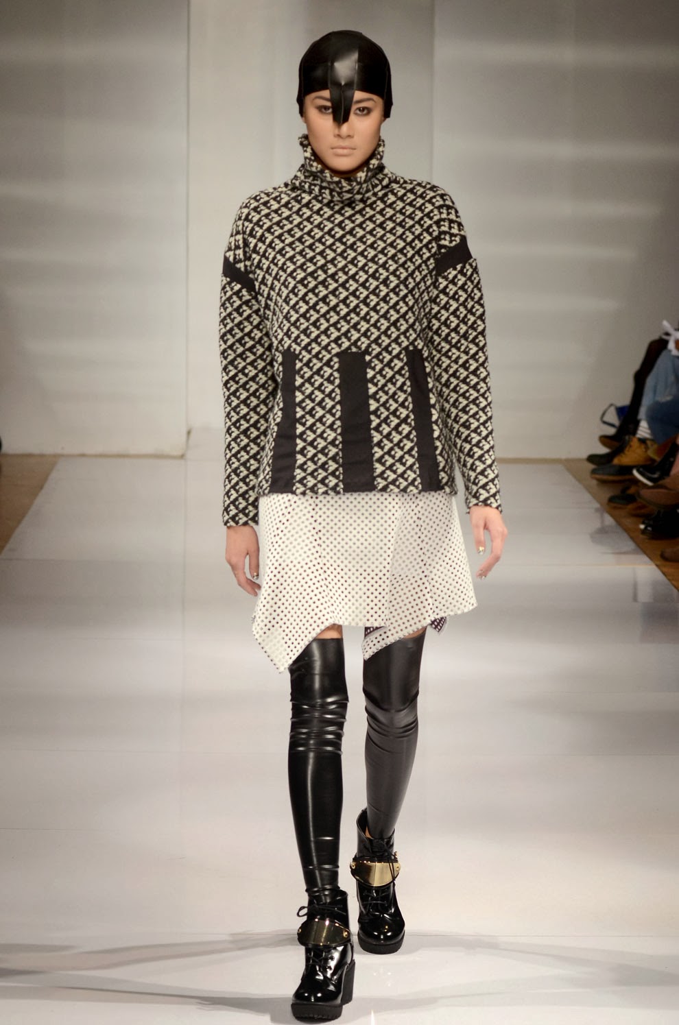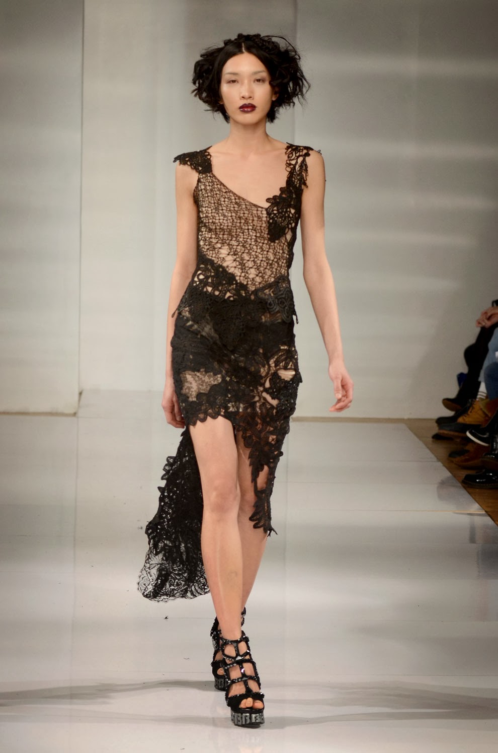Next, the demi-couture/couture collective featured Minnoji, Modu and Mimi New York. Minnoji is a womenswear line founded by Milena Encheva that focuses on clothing that can be worn day to night. It can be described as romantic with a dark twist. This collection was exceptionally well made and featured many gorgeous jackets that I am dying to get my hands on. While the clothes were all feminine and classic, the styling really showcased that dark twist we were looking for.