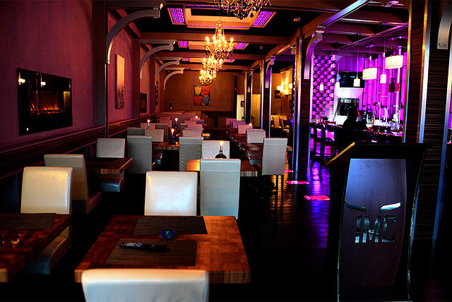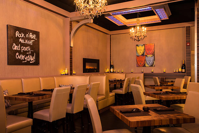 As people step through the doors of IMC, the Swarovski chandeliers, multiple fireplaces, artwork and lighting throughout the restaurant mesmerize them, creating a tranquil, yet trendy environment. While patrons are taken to their butcher-block style table, they will find a few surprises within the hard wood floors, including alcoves holding wine bottles!