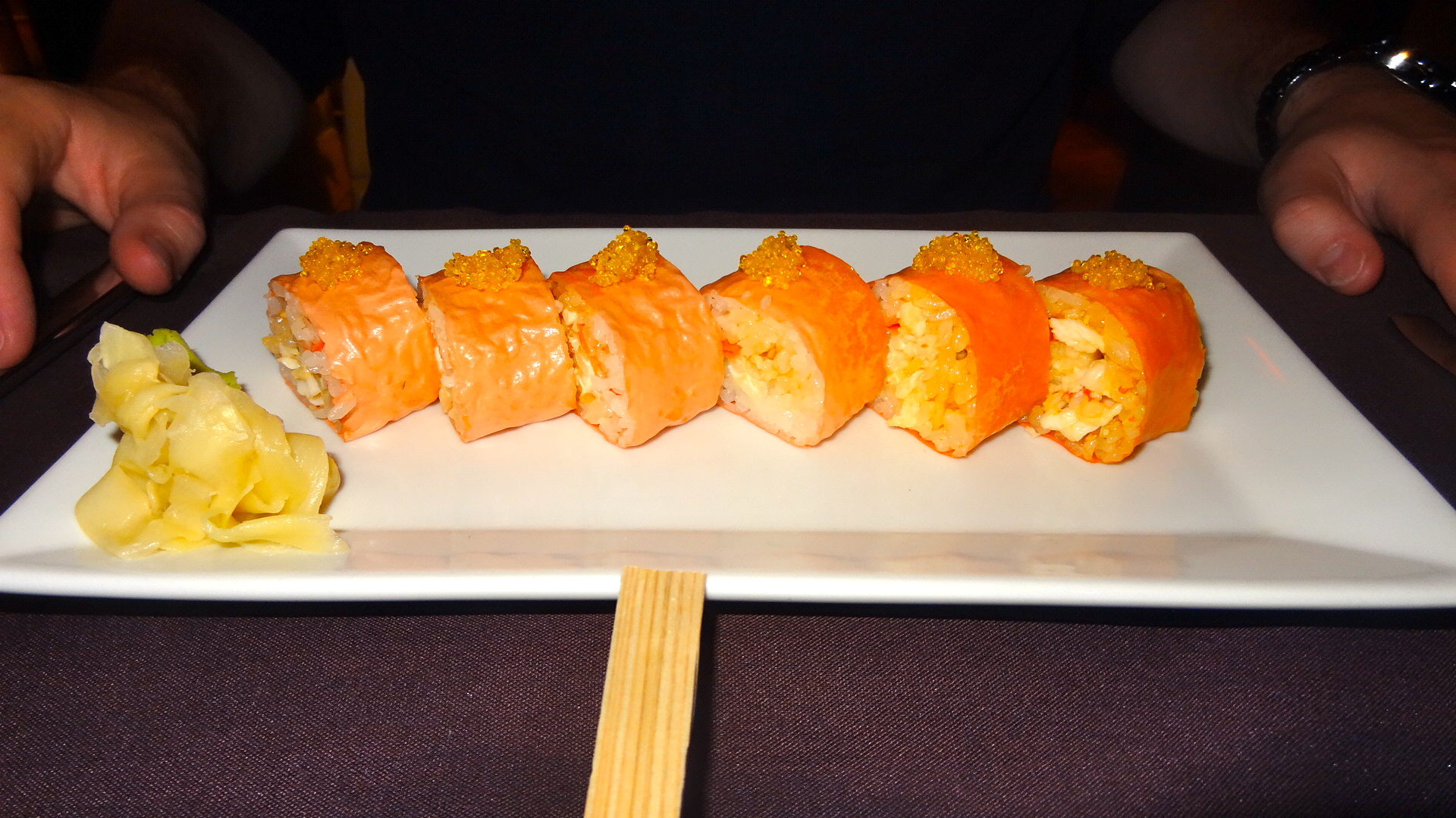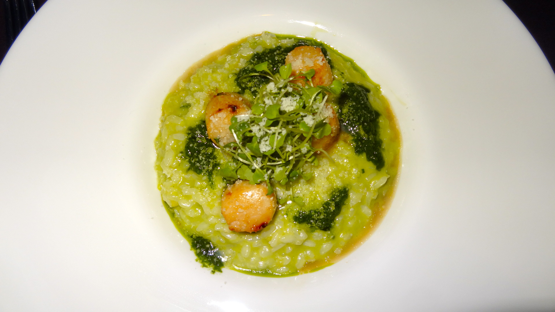 We also tried two mouthwatering entrees — the Asparagus Risotto, which includes baby scallops, lemon and arugula pesto, and the Pink Panther omakase, which is made with king crab, cucumber, soy paper, crunch, wasabi aioli and yuzu roe. The hearty risotto was a great dish for a rainy evening, and the flavorful scallops made us smile. For someone not partial to sushi, I actually enjoyed the Pink Panther seafood delight. Alongside our entrees we sipped on two of the signature cocktails — Pear Express (Jameson Black Barrel, pear, ginger, prosecco) and Cherry Old Fashion (Michter Rye, filthy black cherry, rhubarb bitters). The former was a refreshing cocktail, that was the perfect balance between sweet and boozy, while the latter was a strong libation, be forewarned.