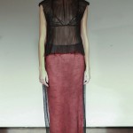 Natalya Egorova had her collection presented during New York Fashion Week and I had a chance to get a glimpse into Natalya’s Spring 2015 line. Born in Russia and studying with well-known designer labels, such as Alexander McQueen and Marchesa, I was looking forward to seeing any hints of what she might have learned or picked up from her mentors. She first launched her line in 2013 and is back with some spring additions. The overall theme for this collection is the world of shadows and the reflection of light. The majority of pieces were very unconventional and I had to take some time to really study each piece. Some of the dresses had pieces of cloth hanging down or buttons sewed in sideways, and see-through shirts paired with long flowing skirts.