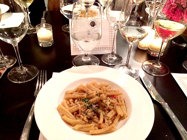 Following our starters, we were treated to a wonderful Strozzapetti, topped with king crab and spicy sea urchin sauce. This was paired with one of our favorite wines of the evening, the aptly named 2012 Favourite Homestead Pinot Gris. The wine was produced using grapes from the Favourite Vineyard in the Awatere Valley, which turned out a rich white wine with hints of honeysuckle, spiced apple crumble and pear, making for a slightly sweet, yet equally crisp wine. This was exceptionally paired with the pasta, as the wine helped to cut the spiciness of the sauce and bring out the flavors of the dish.