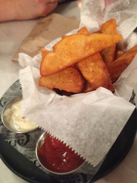 While fútbol plays on TVs around the restaurant, customers go up to the counter to order their meals (the staff recommends 5 montaditos per person). While you wait for your order to be called up, please enjoy some of their Spanish drinks — they serve everything from Spanish beers and wines, to exciting options like Clara, a blend of Spanish beer and lemon-lime soda and sangria. Their extensive montadito menu even includes sampler platters and vegetarian options. How does it get better than this? The montaditos are insanely affordable, with $2.50 being the most expensive on the menu. Even the drinks are a steal, ranging from $3-$5. In addition to the montaditos, the restaurant also offers a selection of salads, cheese and meat platters, fries and brava potatoes. Oh, and did we mention they also have dessert montaditos? Yes, you can order sweet montaditos, made on chocolate bread, stuffed with ingredients like heavy cream and Oreos. It’s as good as it sounds.