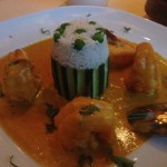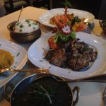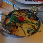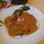 Next, we tried so many dishes from the menu it was hard to pick a favorite. The Murgh Tikka Masala ($14.95) was perfection. The chicken was nice and tender, while the creamy tomato and fenugreek sauce was flavorful and robust. A great aspect of this restaurant is their willingness to accommodate your preferences. They will gladly tone down or rev up the spices in your dishes to your liking. The Tandoori Lamb Chops ($19.95) were bursting with flavor and were tender and juicy. We loved the Saffron Shrimp ($20.95), which were amazingly fresh jumbo shrimp, simmered in a rich saffron korma sauced and served with white rice. We also indulged in some good ol’ homestyle Chicken Curry ($14.95), which, like all their other dishes, was to die for. Last but not least, we tried one of their vegetarian items, the Baingan Mirch Ka Salon ($12.95), which is baby eggplant simmered in coconut, peanut, and curry leaves with flavored gravy. It was divine. In addition to all the great flavors of every dish, the presentation was outstanding. Each plate was its own masterpiece, complete with beautiful food art.