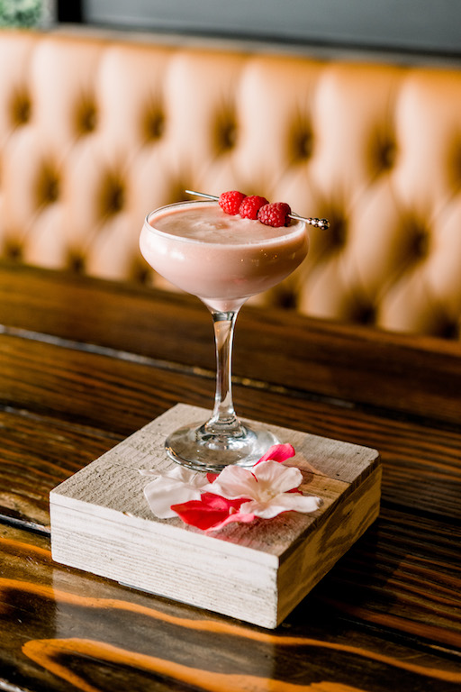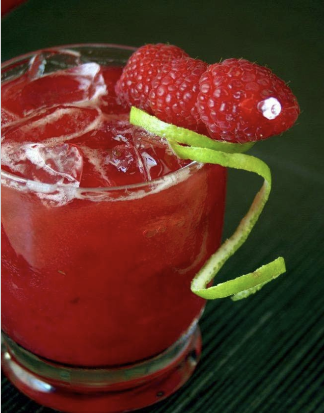 Shake ingredients vigorously, double strain and pour into a coupe. Garnish with fresh raspberries.