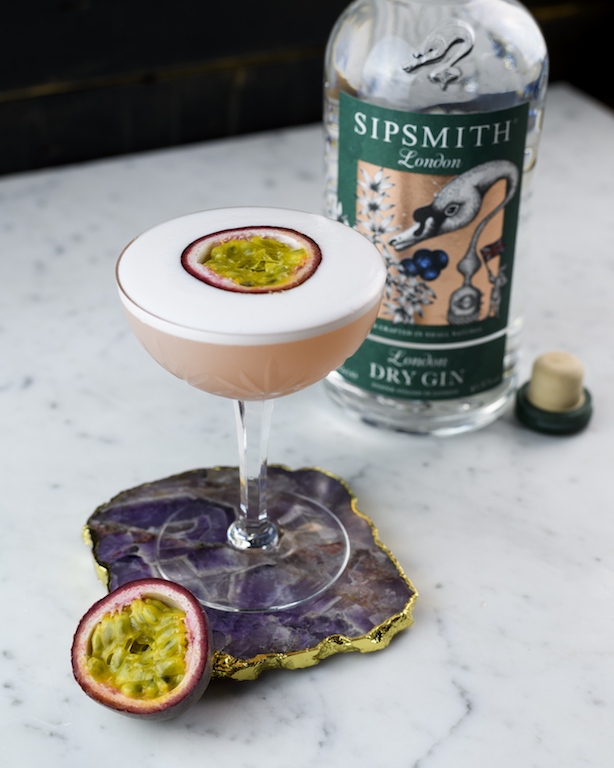Combine all ingredients, including the juice of half a passion fruit, in a shaker. Shake well. Add ice and shake again. Double strain into a chilled glass. Garnish with half a passion fruit.