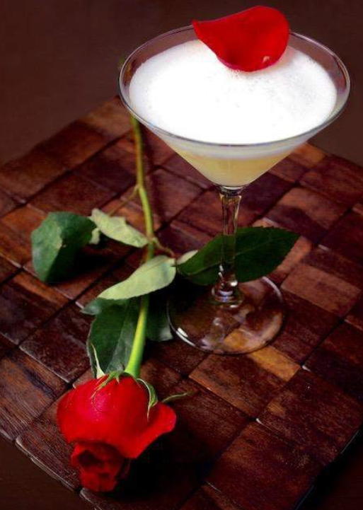 Combine ingredients in a shaker with ice and shake. Then shake without ice, and strain into a coupe and garnish with a rose petal.