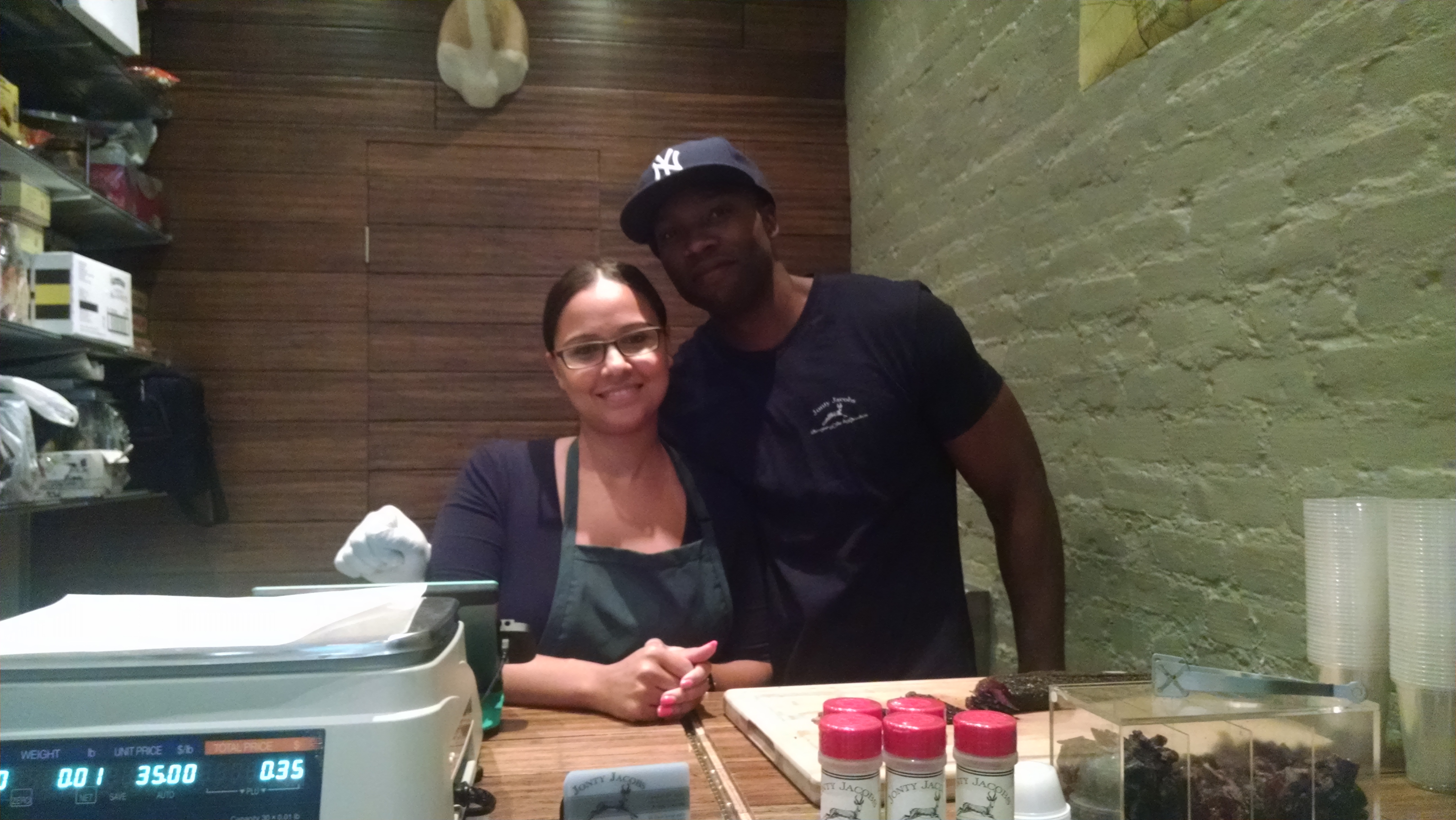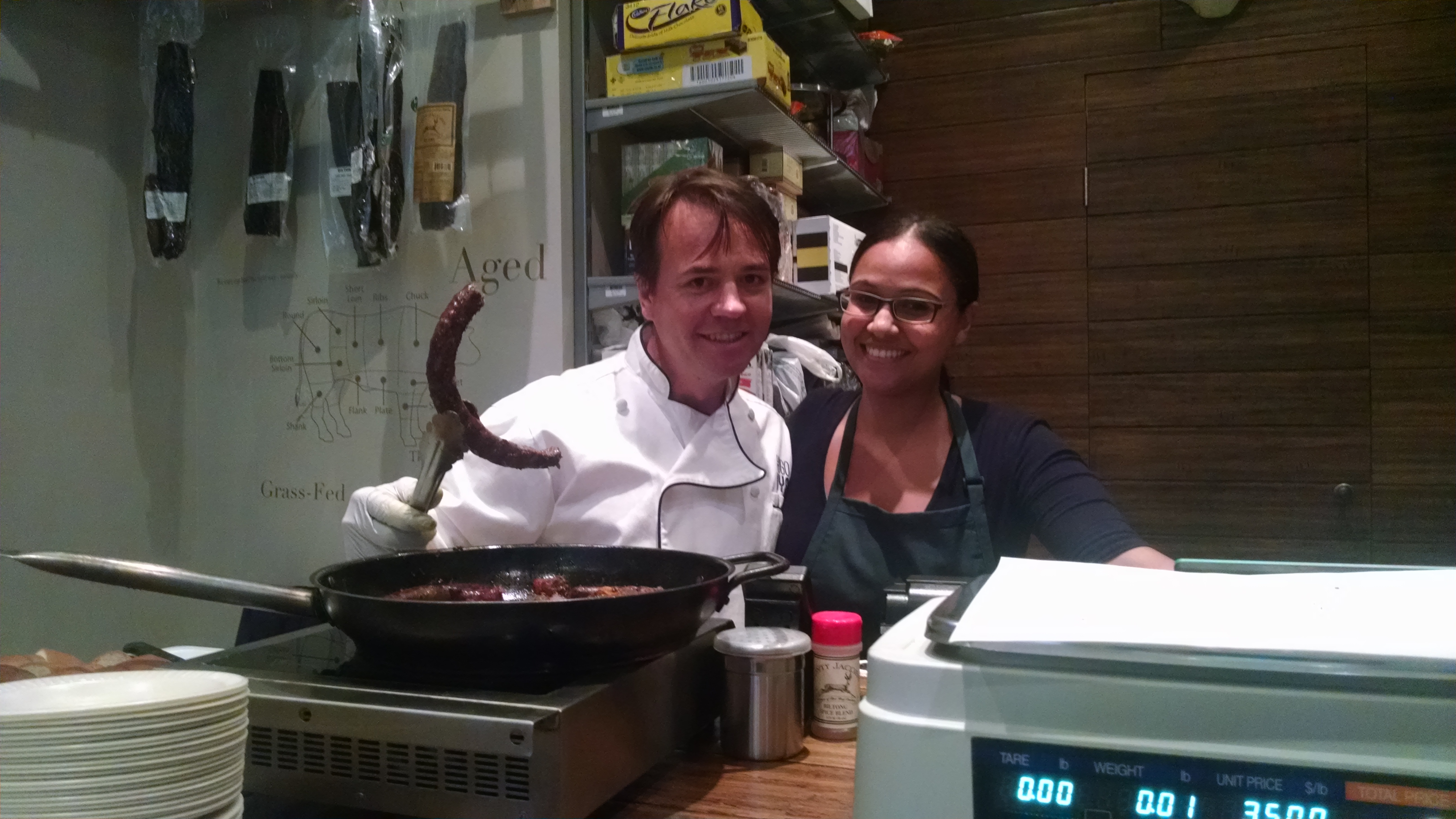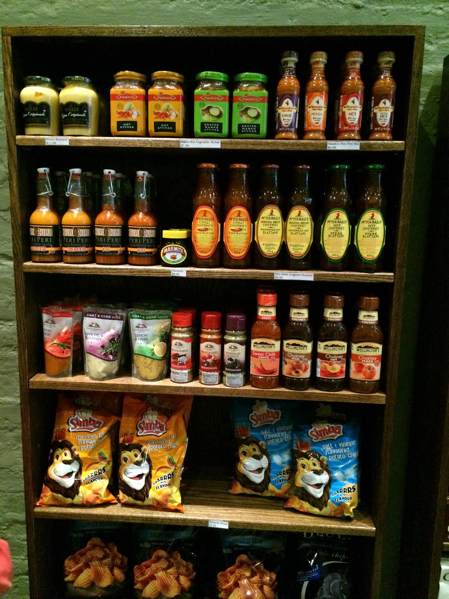 Appearances always matter and when I walked into Jonty Jacobs there was such a pleasant smell that I could not help but just stand there and just take everything in; the smells, the biltong hanging in the corner, the owners happily smiling behind the counter, the chef, and the staff greeting us very pleasantly. The shelves all contain South African goodies like Mrs. Balls Chilli Chutney, Nando’s hot sauce and Romany creams, amongst many other products like truffle products, caviar, and dried fruits and teas.