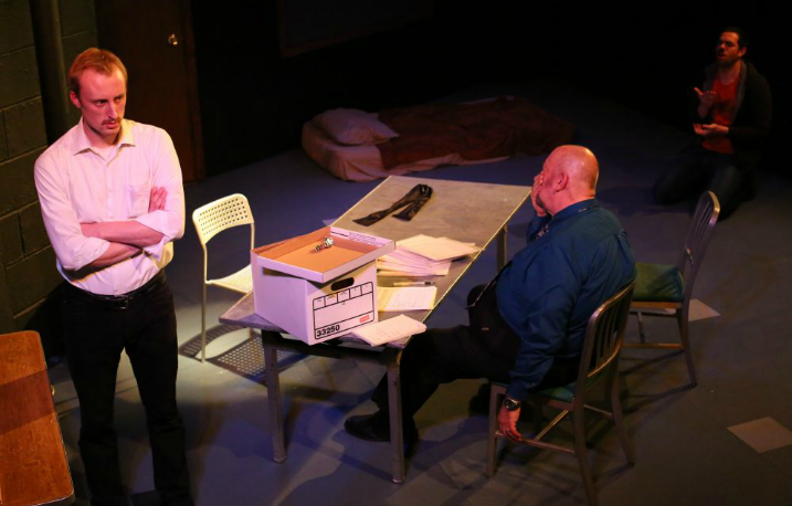 In the play Katurian K. Katurian (Brandon Walker) has been dragged into an interrogation room where he is questioned relentlessly by these two detectives playing the old game of good cop/bad cop. During the interrogation, Katurian finds out that somebody has been killing children using his stories as templates for the murders. The revelation of who it is, and the price to pay for the stories we want to tell and become our legacy and this is what the Katurian character has to deal with for the plot to move forward. In between scenes we are treated to Katurian’s disturbing stories, as if to challenge our sympathy. It’s brilliant of McDonagh and it was fiercely tackled in this production by directors Brandon Walker and Erin Cronican, who put on a strong showing despite the production limitation. And I mention the limitations, because the production itself calls for a bigger stage. The massive journey is hard to sit through when in an intimate space, but that’s the effect that it wants, that it needs. But when up close it does create a certain level of revulsion which audiences may feel more uncomfortable than impressed. This is not to say the production values were bad, oh no! On the contrary, I’m trying to say that they took a play that would be terribly hard to put on no matter what, and succeeded at making a good production in a theater which worked against them for that. The stage was put together in a satisfactory way so both wings could enjoy and follow the play. The sounds were strong, and we could hear them despite the awful music coming through from the place next door. But just as in “Gidion’s Knot,” it’s the performances that shine throughout.
