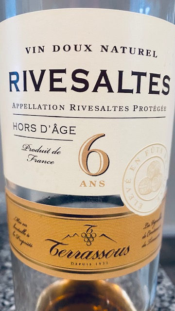 1.5 oz of older oxidized VDN Hors d’Age: Rivesaltes Ambré
